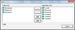 Рис. 26 Выбор таблиц Щелкнув по кнопке «Preview…» мы просматриваем о действиях программы и данные о таблицах Рис. 27