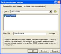 Рис. 28 Paradox/ODBC Connection Щелкнув по кнопке «Connect» необходимо выбрать файловый источник данных, который мы создали Рис. 29