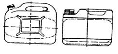 Рис. 1.5 Ампулы различной конструкции Пакеты и сумки относят к мягкой потребительской таре с корпусом в виде рукава, с дном различной конструкции и открытой горловиной. Их вместимость до 20 дм3. Сумки имеют разнообразные ручки. Пробирками называют потребительскую тару, имеющую цилиндрический корпус и плоское или выпуклое дно. Горловина диаметром, равным диметру корпуса, укупоривается пробкой или крышкой. Объем пробирок достигает 0,05 дм3. Канистры имеют корпус, форма которого в сечении, параллельном дну, близка к прямоугольной. В их конструкции предусмотрены приспособления для переноса, сливная горловина и крышка с затвором (рис. 1.6).