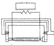 Рисунок 2. Комбинированный электромагнитный способ Следует отметить, что если трещины расположены параллельно магнитным силовым линиям, последние деформируются незначительно и, следовательно, трещины в таких случаях мало выделяются. Поэтому более эффективным является комбинированный способ обнаружения дефектов (рис. 2), при котором создается продольно- поперечное или спиральное магнитное поле. Продольные силовые линии создаются электромагнитом постоянного тока, а поперечные — при подключении испытуемой детали к сети с большей силой тока (обычно подключением ее накоротко к зажимам вторичной обмотки трансформатора). Магнитную смесь, применяемую при этом, изготовляют из200—250 г ферромагнитного порошка и 1 л трансформаторного масла. Ультразвуковой дефектоскопией обнаруживают внутренние дефекты деталей. Преимущество данного метода в том, что благодаря малой степени поглощения ультразвуковых колебаний металлами в определенном диапазоне частот удается обнаружить дефекты, расположенные на большой глубине. При люминесцентном методе проверяемую деталь тщательно промывают и опускают на 10—15 мин в флуоресцирующую жидкость. В качестве последней применяют смесь светлого трансформаторного масла, осветительного керосина и неэтилированного бензина в соотношении по объему 0,25 : 0,5 : 0,25. После извлечения из флуоресцирующей жидкости деталь промывают холодной водой, просушивают сжатым воздухом и облучают ультрафиолетовыми лучами (ртутно-кварцевой лампой ПРК-2 илиПРК-4). Жидкость, выходящая из трещин на поверхность при облучении детали, светится зелено-желтым светом. 1.4 Организация ремонта и составление графиков ремонта оборудованияПри составлении графиков ремонта трубопровода необходимо следить, чтобы время его остановки совпадало со временем ремонта основного оборудования перекачивающих станций. Это позволит-«наиболее полно использовать время остановок трубопровода. Если имеется резерв времени, то ремонт основного оборудования (насосов, приводов к ним, резервуаров) планировать и организовывать несколько проще. В этом случае работу перекачивающих станций можно обеспечить практически без остановок. Для каждого вида оборудования разрабатывают графики планово-предупредительных ремонтов, соблюдая следующие условия: - продолжительность работы между двумя ремонтами должна соответствовать установленным нормам; - длительность каждого ремонта должна быть строго ограниченной; - при длительном ремонте вводить в эксплуатацию резервное оборудование, чтобы число действующих агрегатов не уменьшалось. Число отработанных часов в году для всех агрегатов должно быть примерно одинаковым, для чего при составлении графика ремонта и плана эксплуатации предусматривают поочередное пребывание всего оборудования как в работе, так и в резерве. Вспомогательное оборудование, технологически связанное с основным, обычно ремонтируют одновременно с основным, чтобы сократить общий срок простоя. Для правильной организации ремонта оборудования и качественного выполнения ремонтных работ за короткие сроки необходимо: - учесть все оборудование, которое требует ремонта; - составить паспорт оборудования с определением технического состояния агрегата, машины; - организовать систематический учет работы оборудования, расхода запасных частей, 