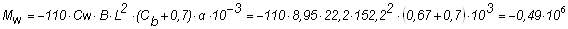 де k = 70 при проміжному МВ. Хвильовий згинаючий момент, що викликає перегин судна: