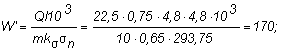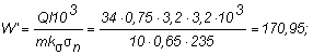 W’ – момент опору балки без обліку запасу на зношування, см3; wk = 1 + aдо ×DS = 1 + 0,091 ×1,2 = 1,11;
