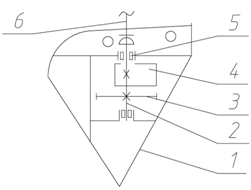 Рисунок 1.1 – Уплотнитель откосов Уплотнитель откосов (рисунок 1.1) состоит из двух вибрационных уплотнительных плит 1 , каждая из которых подвешена к раме 2 при помощи плоских листовых рессор. Рама 2 шарнирно (с возможностью поворота в вертикальной плоскости) жёсткими параллелограммными подвесками 4 присоединена к ферме машины. Раздельное опускание уплотнительных плит в рабочее положение и подъём в транспортное производится механизмом подъёма 6. На нижней балке рамы 2 болтами закреплён вертикальный электродвигатель 3, вал которого связан с вибратором плиты при помощи карданного вала.