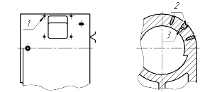 Для обраних операцій призначимо різальні інструменти згідно з рекомендаціями [1], виходячи із оброблюваного матеріалу та заданих початкових умов: • для чорнового фрезерування поверхні 1 (операція 15) – фреза торцева насадна ш160 ГОСТ 9473–80, праворіжуча, позначення: 2214–157; матеріал твердосплавних пластин – ВК6, кількість зубів z =16, ширина B = 46 мм [табл. 94, с. 187, 1]; геометричні параметри фрези за ГОСТ 9473–80; • для чорнового розточування отворів 1 і 2 (операція 15) – розточувальні різці з пластинами з твердого сплаву за ГОСТ 9795–84 типу 4, виконання 1, позначення різця – 2142-0444 (лівий, з кутом врізання 10є) [табл. 17, с. 126, 1]. Геометричні параметри різця: - переріз різця: hЧb = 16Ч16 мм; - довжина різця L = 63 мм; - довжина пластина l = 12 мм; - тип пластин за ГОСТ 25396-82 : 07; - головний кут в плані: ц = 60є, - допоміжний: ц1 = 35є. Вибір матеріалу твердосплавних пластин проводимо відповідно до рекомендацій додатку [Д. 2.1., с.444, 2]. Для чорнової обробки деталі приймається твердий сплав ВК6, Решту геометричних параметрів різця вибираємо за [Д. 2.7., с.450, 2]: - б = 6є – задній кут; - г = 8є – передній кут; - f = 0,4 мм – ширина фаски різальної кромки; - с = 0,02 мм – радіус округлення різальної кромки; - rв = 0,8 мм – радіус вершини різця. • для свердлування отворів (операція 35) – свердло ш10,2 ГОСТ 10903–77 [табл. 42, с. 147, 1], позначення – 2301-0030 (нормальної точності, клас В1, з нормальним хвостовиком), матеріал – швидкорізальна сталь Р6М5. Геометричні параметри свердла за [табл. 44, с. 151, 1]: - б = 12є – задній кут; - a = 1,2 мм – ширина поперечної кромки; - ш = 55є – кут нахилу поперечної кромки. 2. Виконання ескізів