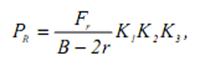 где Fr = 2500 H = 2,5 кH – радиальная нагрузка; В = 15 мм = 0,015 м – ширина кольца; r = 1,5 мм = 0,0015 м – радиус фаски; К1 – динамический коэффициент посадки (при перегрузке до 150% К1 = 1; при перегрузке > 150% К1 = 1,8); К2 – коэффициент, учитывающий ослабление натяга при полом вале или тонкостенном корпусе (при сплошном вале К2 = 1); К3 – коэффициент неравномерности распределения радиальной на- грузки между телами качения в двухрядных или сдвоенных подшипниках (в примере К = 1). PR = 2,5 /(0,015 – 2*0,0015) *1*1*1 = 208,333 Кн/м Таблица 7 – Рекомендуемые поля допусков валов и отверстий корпусов под подшипниками качения с местным нагружением колец