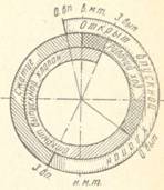 Рисунок 1. - Диаграмма фаз газораспределения Общая круговая диаграмма показывает, что в определенный период времени одновременно открыты впускной и выпускной клапаны. Угловой интервал вращения коленчатого вала, при котором оба клапана открыты, называется перекрытием клапанов, которое необходимо для своевременной и качественной очистки цилиндров от продуктов сгорания. Таблица 1. Фазы газораспределения автомобильных двигателей
