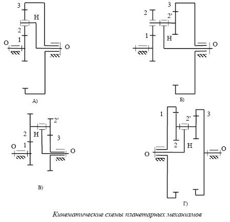 Для всех типов механизмов изображенных на рисунке, выражения передаточных отношений могут быть сведены в таблицу 1.