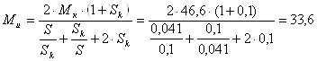 По значению критического момента найдем момент сопротивления двигателя по формуле Клосса: 1 точка: при S=0: