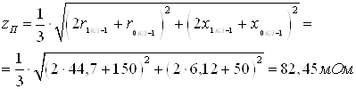 где Учитывая то обстоятельство, что приведённые значения сопротивлений сети 10 кВ значительно меньше таковых в сети 0,4 кВ, при определении токов к.з. можно пренебречь сопротивлениями сети высокого напряжения. Тогда расчёт значительно упростится. Полное сопротивление току однофазного к.з. для трансформаторов марки ТМ-630/10 при соединении обмоток Y/Y0 составляет: