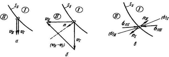 скорости движения индивидуальных точек обеих сред, находящихся в контакте в