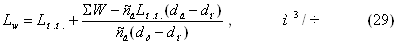 После этого определяется воздухообмен по полным теплоизбыткам и влаговыделениям в помещении (формулы (28) и (29)).