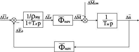 Рис. 2.2. Линеаризованная структурная схема ДПТ в о.е. На схеме (рис. 2.2) обозначено: