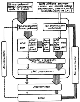 Культивирование проводилось на модифицированной среде Номура следующего состава (в %): картофельный крахмал – 2; двузамещённый цитрат аммония – 3; КСl – 0,15; MgSO4 – 0,05; СаС12 – 0,01; экстракт соевых бобов – 1,0. Если в составе среды изменять источник минерального азота (см. табл. 2.37), то биосинтез протеолитических ферментов будет заметно изменяться, особенно, если соль кислая, например NH4NO3. При потреблении аммонийного азота в среде накапливаются ионы азотной кислоты и среда резко подкисляется, и, хотя рост культуры и происходит, биосинтеза протеиназ не наблюдается. Если взять двузамёщенный фосфат аммония за контроль, то при изучении влияния различных источников органического азота для этого же штамма (табл. 4) оказалось, что уровень рН меняется меньше, чем с неорганическим азотом, и только в одном случае – с глютеном – биосинтез протеолитических ферментов ниже контрольного. Кроме того, введение в состав среды помимо (NH4)2HPO4 (1,2 %) кукурузного экстракта (0,8 %) и пивных дрожжей (0,4 %) позволило получить активность в культуральной жидкости до 1 300 ед. ПС/мл, т. е. почти в 20 раз больше контроля. |
