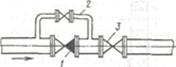 Рисунок 1 - Схема устройства обводной линии к обратному клапану: 1 - обратный клапан; 2 - обводная линия с задвижкой; 3 - задвижка на напорной линии насоса.