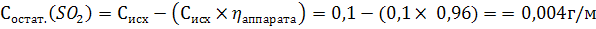 где Сост.вещества – остаточная концентрация вещества после очистки, г/м3, которую найдем по формуле :