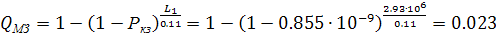 2.15 Расчет надежности обмотки статора Пусть вероятность наличия хотя бы одного дефекта изоляции провода длиной 100мм после укладки: q1=0.2, коэффициент характеризующий качество пропитки: kпр=0.5, тогда дефектность витковой изоляции до начала эксплуатации электродвигателя: