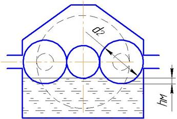 Окончательные параметры подшипников приведены в табл.7. Параметры выбранных подшипников 9 Выбор масла, смазочных устройств Используем картерную систему смазывания. В корпус редуктора заливаем масло так, чтобы венец зубчатого колеса был в него погружен на глубину hм (рис.10): hм max £ 0.25d2 = 0.25×102 = 25,5мм; hм min = 2×m = 2×1,5 = 3мм. При вращении колеса масло будет увлекаться его зубьями, разбрызгиваться, попадать на внутренние стенки корпуса, откуда стекать в нижнюю его часть. Внутри корпуса образуется взвесь частиц масла в воздухе, которым покрываются поверхности расположенных внутри корпуса деталей, в том числе и подшипники.