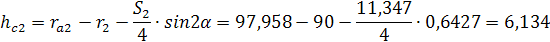 | Курсовая работа: Проектирование зубчатого и кулачкового механизмов1.2 Проверка качества зубьев и зацепления Проверка на не заострение: Sa≥0,4∙m=0,4∙6=2,4 мм; Sa1=3,017мм; Sa2=4,338мм. Проверка на отсутствие подрезания: 0,5∙z1∙sin2α ≥ h*a – x1; 0,5∙14∙0,1833 ≥ 1 – 0,519; 1,2831≥ 0,481. 0,5∙z2∙sin2α ≥ h*a – x2; 0,5∙30∙0,1833 ≥ 1 – 0,418; 2,7495≥ 0,582. Для обеспечения плавности зацепления коэффициент перекрытия для силовых передач требуется принимать ε ≥ 1,15. За нашими подсчетами имеем ε = 1,265 1.3 Расчет контрольных размеров Размер постоянной хорды: Sc=S∙cos2α; Sc1=S1∙cos2α = 11,766∙0,883= 10,389мм; Sc2=S2∙cos2α = 11,347∙0,883= 10,019мм. Расстояние от окружности вершин до постоянной хорды: