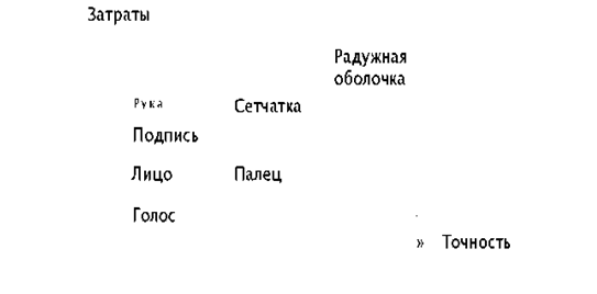 Рис. 2. Сравнение методов биометрической идентификации Таким образом, наряду с измерителями биометрических характеристик СКУД должны быть оборудованы соответствующими считывателями идентификационных карточек или пластиковых ключей (или цифровой клавиатурой). Основные биометрические средства защиты информации, предоставляемые сегодня российским рынком обеспечения безопасности, приведены в табл. 1, технические характеристики некоторых биометрических систем представлены в табл. 2. Таблица 1. Современные биометрические средства защиты информации