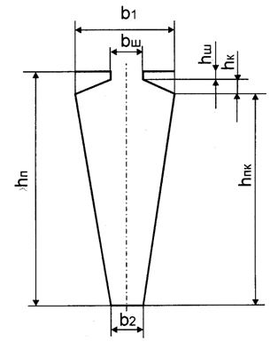 паза (cм. рис.3.1) Принимаем толщину клина Исходя из условия паралельности граней, находим: b2=(pD-2hп)/Z1-bz1=3,14×( 0,073-2×0,02)/26)- 0,0031 = 0,0009 м = 0,9 мм; b1=p (D-2hш1 -2hк)/ Z1-bz1=3,14( 0,073-2×0,0005-2∙0,0005)/ 26- - 0,0031 = 0,0055м =5,5 мм; по (8.44)- (8-45) [1] ( hпк=hп-hш1- hк=0,02-0,0005-0,0005 = 0,0190 м =19 мм.