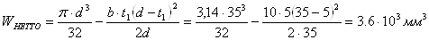 Момент опору крутінню при d=35 мм; b=10 мм; t1=5 мм