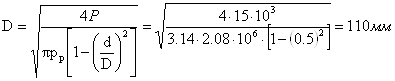 Принимаем D = 110 мм задавшись соотношением d/D, определяем d
