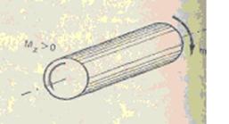 | Реферат: Механические свойства твердых тел в практикеΣХ = 0; ΣY=0; ΣZ = 0; Σ mx= 0; Σmy = 0; Σ mz = 0. (10) Кроме проекций на соответствующую ось (или моментов относительно оси) всех внешних сил, приложенных к оставшейся части, в каждое уравнение входит только одно неизвестное усилие. Это обстоятельство подтверждает целесообразность раздельного определения составляющих главного вектора и главного момента внутренних сил, поскольку отпадает необходимость в совместном решении нескольких уравнений. Независимо от закона распределения по сечению внутренние силы всегда приводятся к стандартной системе усилий N, Qx, .., My, алгебраические значения которых зависят только от абсциссы сечения z. Усилия связаны с конкретными видами деформации бруса, которые подробно рассматриваются в последующих главах. Если в поперечных сечениях возникает, например, только продольная сила N, а остальные усилия отсутствуют, то брус испытывает растяжение или сжатие (в зависимости от направления силы). При наличии только поперечной силы ( или Qx, или Qy, или обеих вместе) возникает сдвиг. Если не равен нулю только момент Mz, то брус работает на кручение. При возникновении только изгибающего момента Mx или My брус испытывает чистый изгиб соответственно в плоскости zQy или zQx. В более общем случае к изгибающему моменту добавляется поперечная сила ( в первом случае Qy, во втором – Qx). Такой изгиб называется поперечным. Из изложенного следует, что разложение главного вектора и главного момента внутренних сил на составляющие имеет не формальный, а чётко выраженный физический смысл. 1.6.Крутящий момент Кручению подвергаются многие детали машин и сооружений: валы двигателей, станков и машин, оси локомотивов и моторных вагонов, элементы пространственных конструкций. Ограничимся рассмотрением вопросов, представляющих интерес с точки зрения расчёта строительных машин, а также подъёмно-транспортного и такелажного оборудования для монтажа строительных конструкций. Брус испытывает кручение, если к нему прикладываются пары сил, лежащие в плоскостях, перпендикулярных его продольной оси. Моменты этих внешних пар обозначают m (рис.21, а). Под действием внешних моментов в поперечных сечениях закручиваемого бруса возникает единственная составляющая главного момента, которая называется, как отмечалось в п.1.5, крутящим моментом и обозначается Mz.. Остальные составляющие главного момента, а также все составляющие главного вектора равны нулю. Крутящий момент определяют методом сечений. Брус рассекают воображаемой плоскостью, перпендикулярной его продольной оси, мысленно отбрасывают одну из образовавшихся частей, а ее действие на оставшуюся часть заменяют неизвестным моментом Mz (рис.21, б). После этого составляют единственное уравнение равновесия оставшейся части Σmz=0, из которого и определяют значение Мz. Таким образом, крутящий момент в поперечном сечении бруса численно равен алгебраической сумме внешних моментов, приложенных одной стороны от рассматриваемого сечения. Правило знаков. Условимся считать крутящий момент положительным, если внешний момент m направлен по ходу часовой стрелки при взгляде от сечения к любому концу бруса (рис.22).