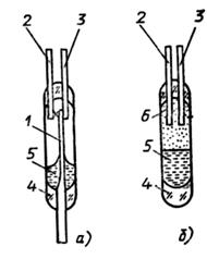 Рис. 7.12 Контактор с жидкометаллическим контактом По сравнению с твердометаллическими ЖМК обладают следующими преимуществами: 1. Малое переходное сопротивление и высокие допустимые плотности тока на поверхности раздела электроизоляционного материала. Полости корпуса заполнены жидким металлом 4 и соединяются между собой отверстием 5. Внутри полостей корпуса плавают пустотелые ферромагнитные цилиндры 6. При подаче напряжения на катушку 7 цилиндры 6 опускаются вниз. Жидкий металл поднимается и через отверстие 5 соединяет электроды / и 2, контактор включается. По сравнению с твердометаллическими ЖМК обладают следующими преимуществами: 1. Малое переходное сопротивление и высокие допустимые плотности тока на поверхности раздела жидкий металл—электрод (до 120А/мм2), что позволяет резко сократить габаритные размеры контактного узла и контактное нажатие, особенно при больших токах. 2. Отсутствие вибрации, приваривания, залипания и окисления контактов при их коммутации. 3. Высокая механическая и электрическая износостойкость ЖМК, что позволяет создавать аппараты с большим сроком службы.- 4. Возможность разработки коммутационных аппаратов на новом принципе [автоматический восстанавливающийся предохранитель и др.] благодаря свойствам текучести жидкого металла. 5. Возможность работы ЖМК при высоких внешних давлениях, высоких температурах, в глубоком вакууме. К электрическим аппаратам обычно предъявляется требование сохранять работоспособность в интервале температур ±40СС. Очевидно, что жидкий металл должен сохранять свое состояние в указанном интервале. Из известных материалов только ртуть находится в жидком виде при температуре ниже 0°С и может быть в чистом виде пригодна для ЖМК. Высокая токсичность паров ртути существенно осложняет технологию ее применения. В ЖМК перспективно применение диэлектрического или металлокерамического твердого каркаса, пропитанного жидким металлом. Герметичные контакты (герконы) Наименее